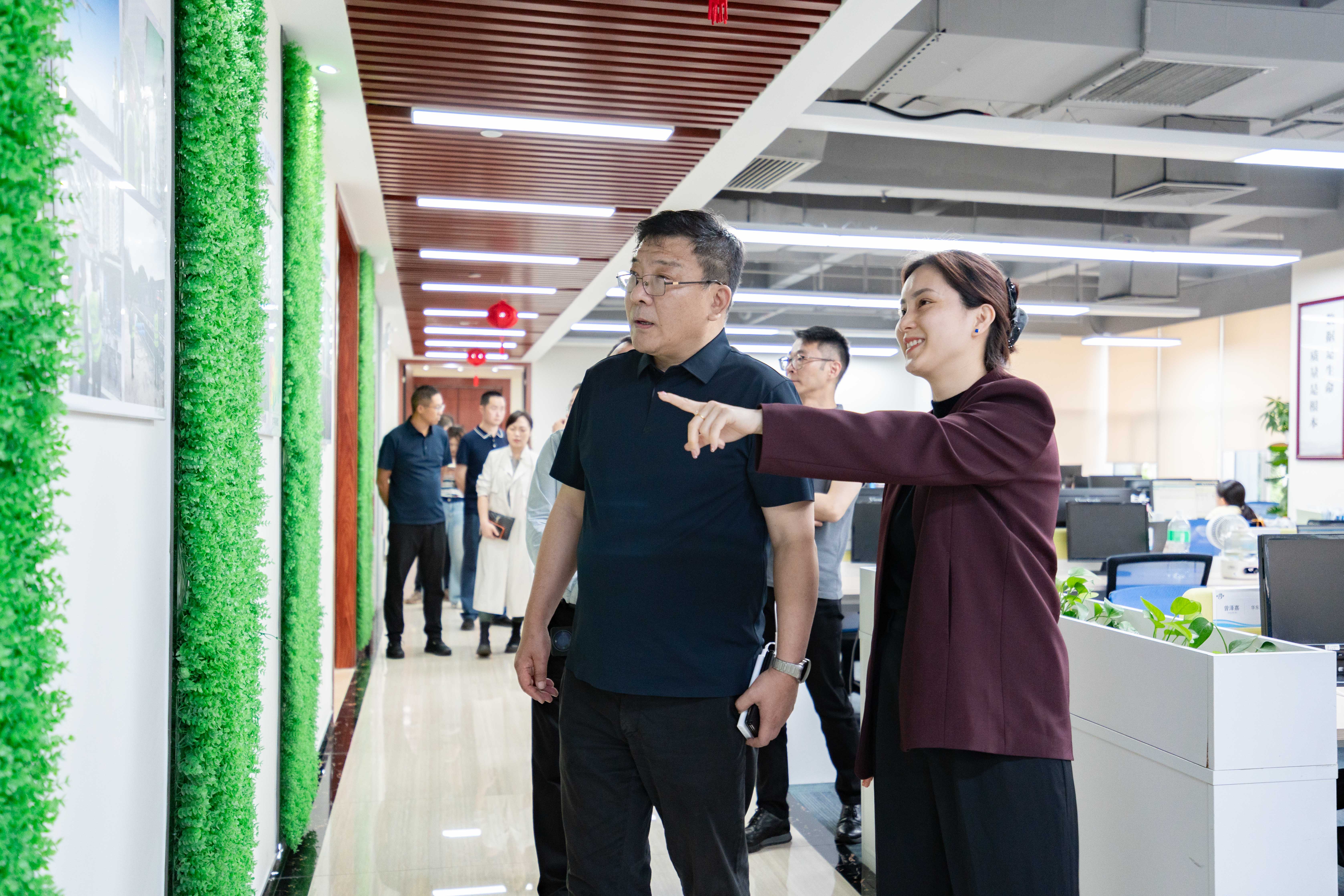 调研组一行实地参观了企业办公环境、文化墙及资质荣誉展区,详细了解新禾智慧在低空应用场景与智慧城市领域的技术积淀与创新实践成果。