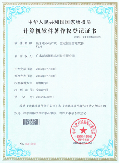 新禾道科技继去年获得多项荣誉及资质后,近日又获得信息系统集成三级资质以及不动产软件著作权登记证书,企业资质得到进一步加强,服务实力进一步提高。